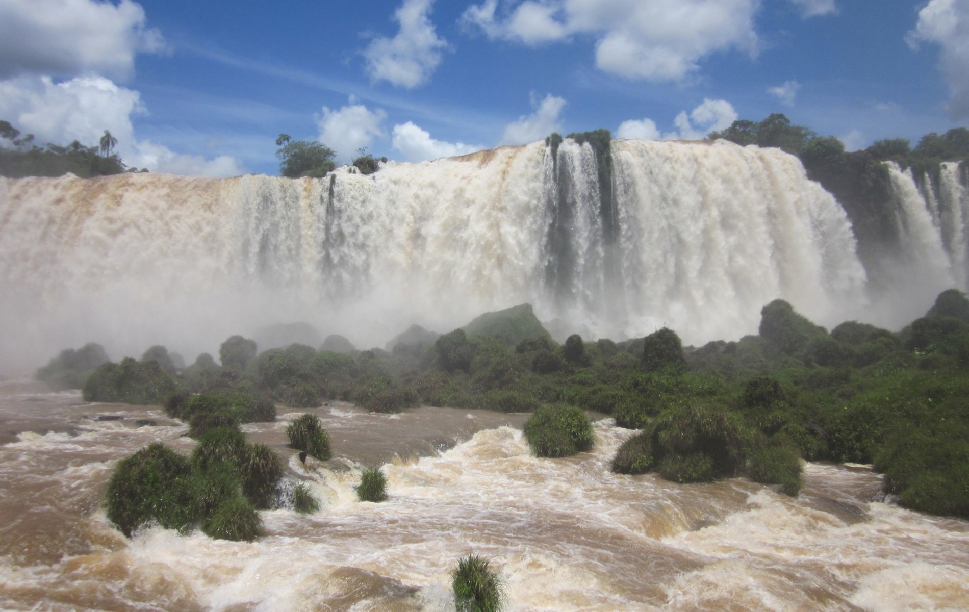 Cataratas de Iguazú ligger på grænsen mellem Brasilien, Argentina og Paraguay og er i virkeligheden hele 275 vandfald fordelt over en strækning på 2,5 km.