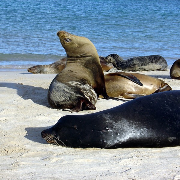 Ved ankomsten foretages en våd landgang direkte på den røde strand, hvor søløver ofte ligger og soler sig, og pelikaner bygger rede – et af de bedste steder på Galapagos at opleve disse fugle tæt på under yngletiden.