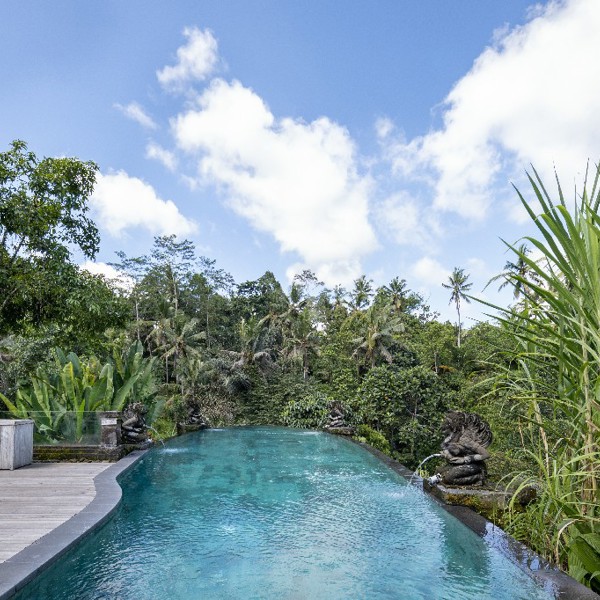 The Kayon Resort er et fortryllende femstjernede boutique-resort er designet i fuldstændig harmoni med naturen. Hotellet ligger i tropisk regnskov omringet af Petanu-floden, hvor de naturlige omgivelser skaber en afslappende stemning i harmoni med naturen. Resortet tilbyder luksuriøse værelser med store marmorbadeværelser samt narturskønne terrasser. Kayon Resort er det oplagte sted til bare at slappe af og holde ferie i ét med naturen. Der er endda mulighed for spabehandlinger og massage, hvis man vil forkæle sig selv lidt ekstra. Resortet ligger kun 10 minutters kørsel fra Ubud centrum.