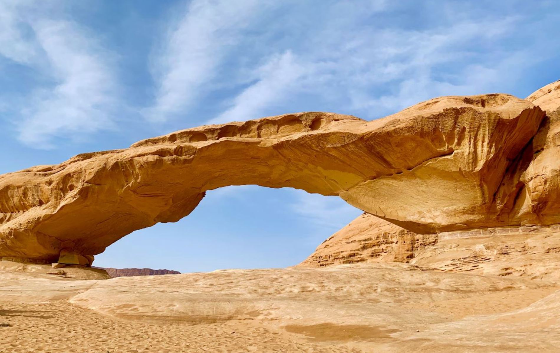 Wadi Rum er et af Mellemøstens mest spektakulære ørkenlandskaber – en endeløs verden af rødt sand, dramatiske klippeformationer og stilhed, der næsten kan høres. Ørkenen breder sig i det sydlige Jordan og er kendt for sine monumentale sandstensbjerge, naturlige klippebroer og dybe kløfter, formet gennem millioner af år af vind og vejr.