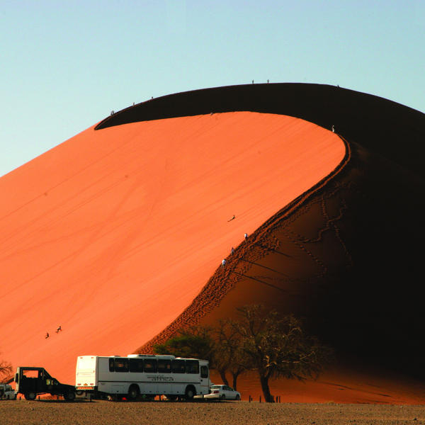 Denne rejse er et fleksibelt forslag til jer, der ønsker at rejse på egen hånd – uden selv at køre. Med shuttlebus kan I nemt rejse mellem Windhoek, Kalahari, Fish River Canyon, Sossusvlei, Swakopmund, Damaraland og Etosha.
